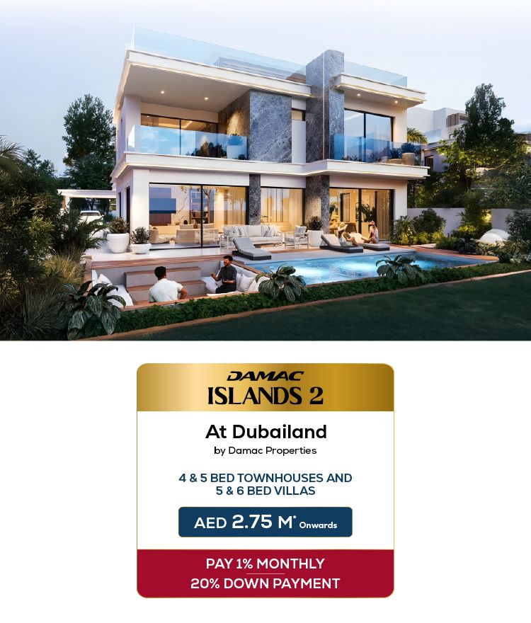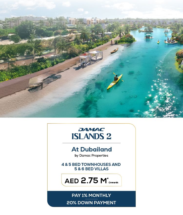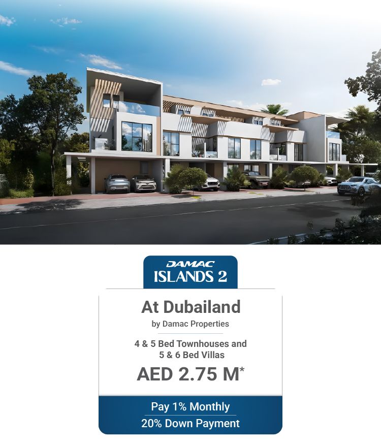 DAMAC Islands is a prestigious waterfront community in Dubai, UAE, offering residents stunning views of the Arabian Gulf and seamless access to key destinations such as Dubai Marina, Palm Jumeirah, and JBR. Its prime location near Sheikh Zayed Road and nestled between Emirates Road (E611) and Sheikh Mohammed Bin Zayed Road (E311) ensures excellent connectivity to Dubai’s business hubs and attractions. The development of DAMAC Islands boasts modern villas and townhouses designed with floor-to-ceiling windows that maximize natural light and embrace the beauty of coastal living. Residents can enjoy over 25 top-tier amenities, including luxurious pools and state-of-the-art fitness centers, for a lifestyle of unparalleled comfort and convenience at DAMAC Islands. Come and live joyfully at the DAMAC Islands New Launch.